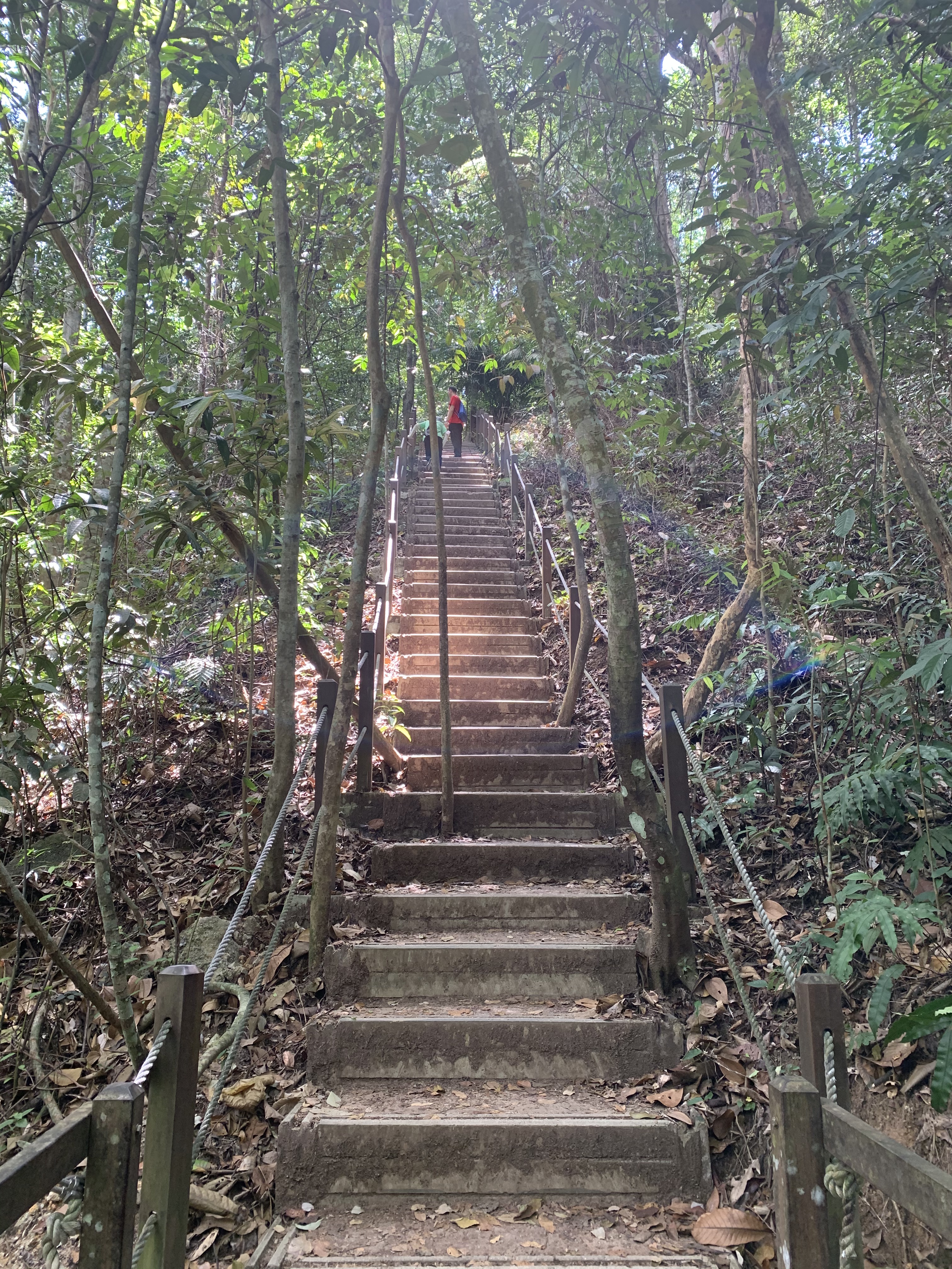 Wir waren vor einigen Wochen schon mal im Bukit Timah Park gewesen. Ich erzähle dazu noch mehr in einem anderen Blogbeitrag. Vielleicht schaffe ich das heute ja noch. Wir waren nur relativ kurz da gewesen und wollten daher noch einen ganz bestimmten Weg laufen. Den Dairy Loop. Dairy heißt ja Milchfarm. Dairy Loop – darunter stellte ich mir also einen komplett flachen Weg vor. An offenen grünen Wiesen, auf denen Kühe und Schafe weiden, vorbei.