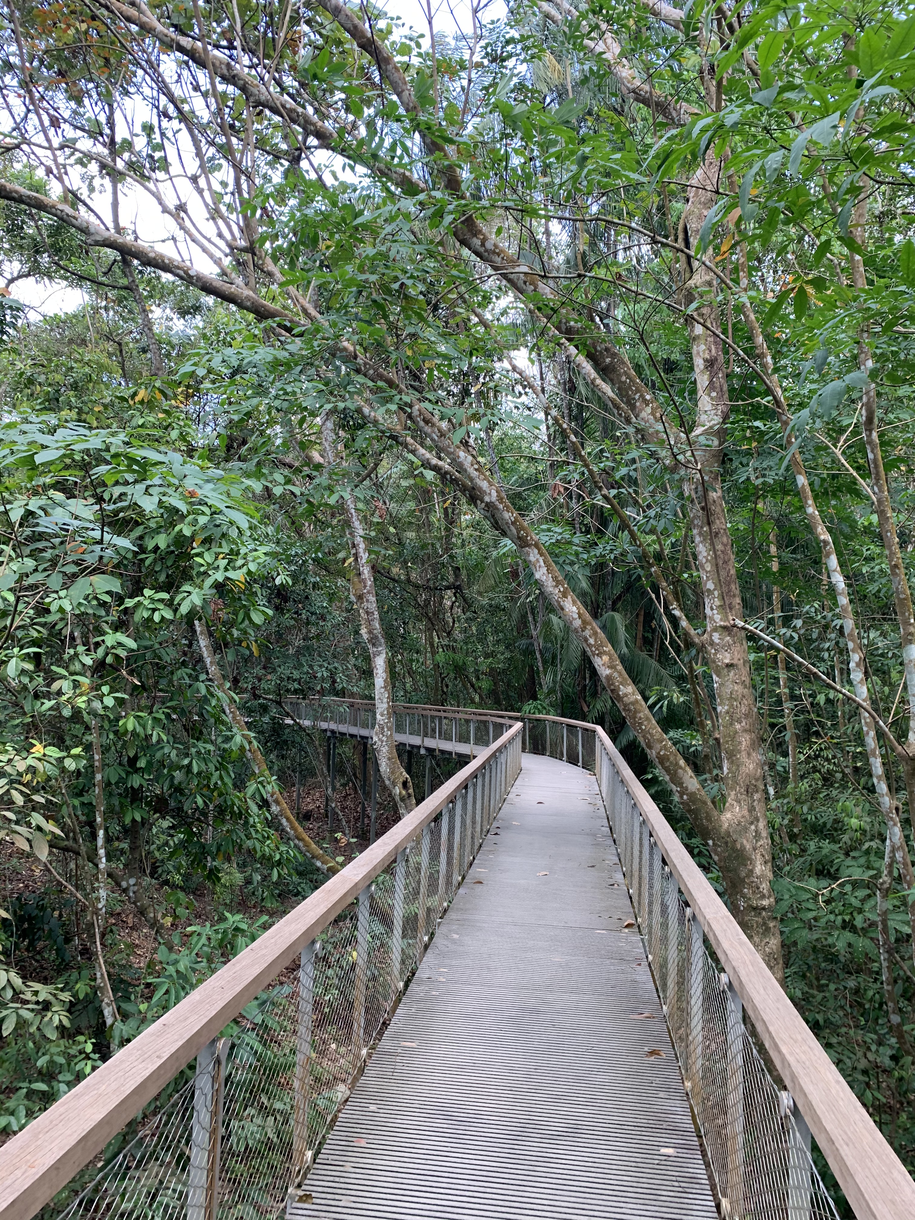 Vor lauter Wanderlust waren wir uns nicht so wirklich bewusst, wie weit wir bereits von unserem Auto weg waren. Wir dachten, na ja, so plus/minus 45 Minuten und wir sind wieder da. Aber auch da, weit gefehlt. Wir brauchten locker fast doppelt so lange. Dafür konnten wir das letzte Stück noch quasi über einen TreeTop Weg gehen. Nicht ganz so hoch hoben, aber auch nicht ganz unten. Also irgendwo dazwischen. Bevor wir uns erschöpft aber glücklich ins Auto gesetzt haben, um auf unsere Ferieninsel zurück zu fahren.