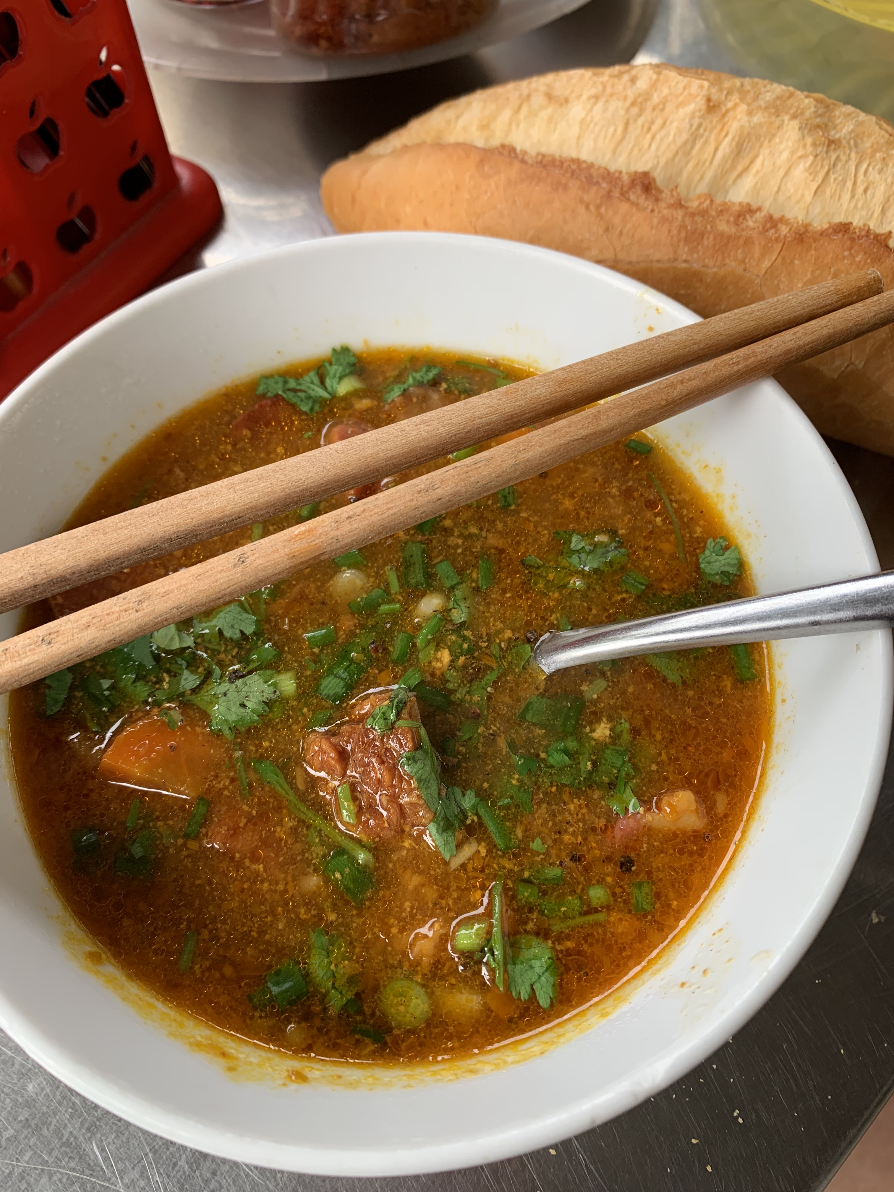 Nach einem gemütlichen Abend, ging es am nächsten Morgen um 6:45 Uhr los. 6:45! Wer mich kennt, weiß: DAS ist nicht meine Zeit. Normalerweise drehe ich mich nach 6:45 noch diverse Male um, bevor ich bereit bin, die Horizontale zu verlassen. Aber da in Vietnam alle Menschen früh aufstehen und es nach 10:00 Uhr fast nicht mehr möglich ist, sich draußen zu bewegen – zumindest nicht zu dieser Jahreszeit – blieb mir nichts anderes übrig. Schlag 6:45 Uhr hatte ich meinen ersten Kaffee intus und bereit für die Abfahrt zum Frühstück. Wir sind ja nicht zum Spaß hier!