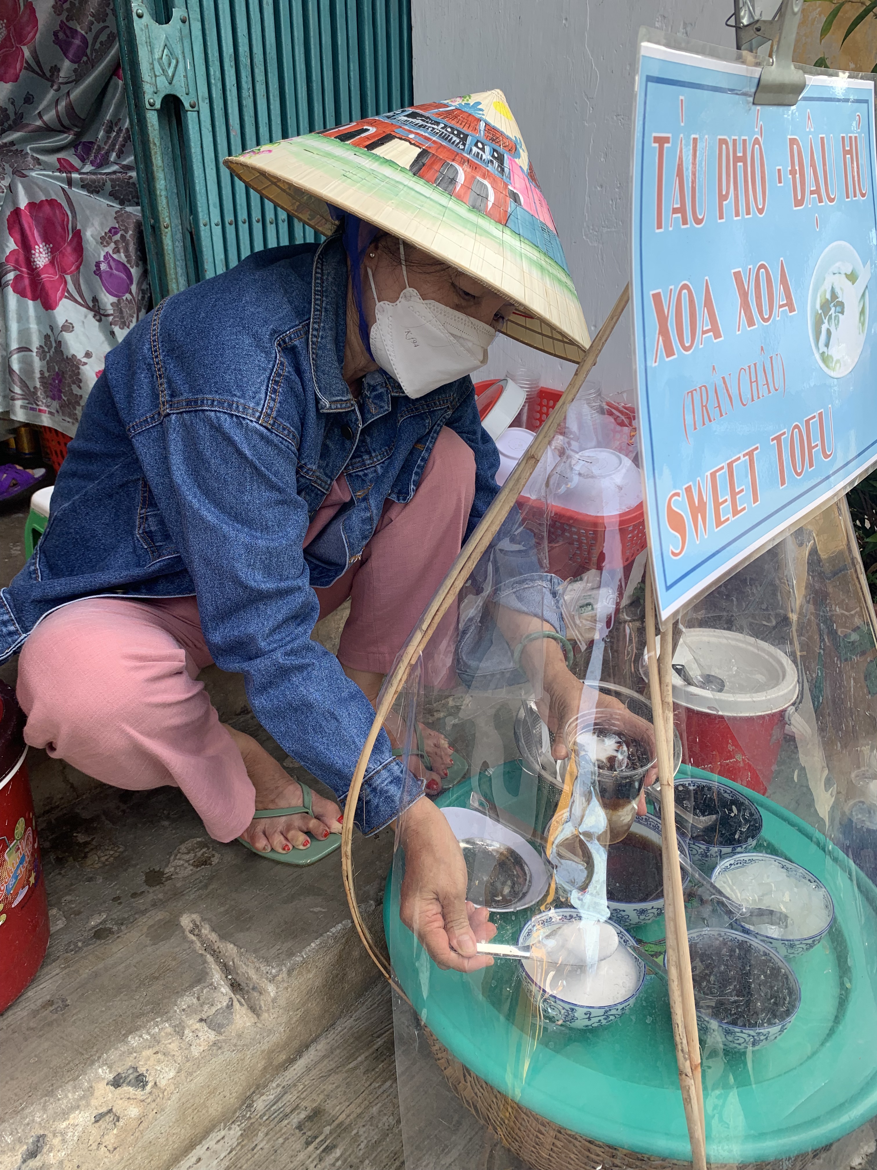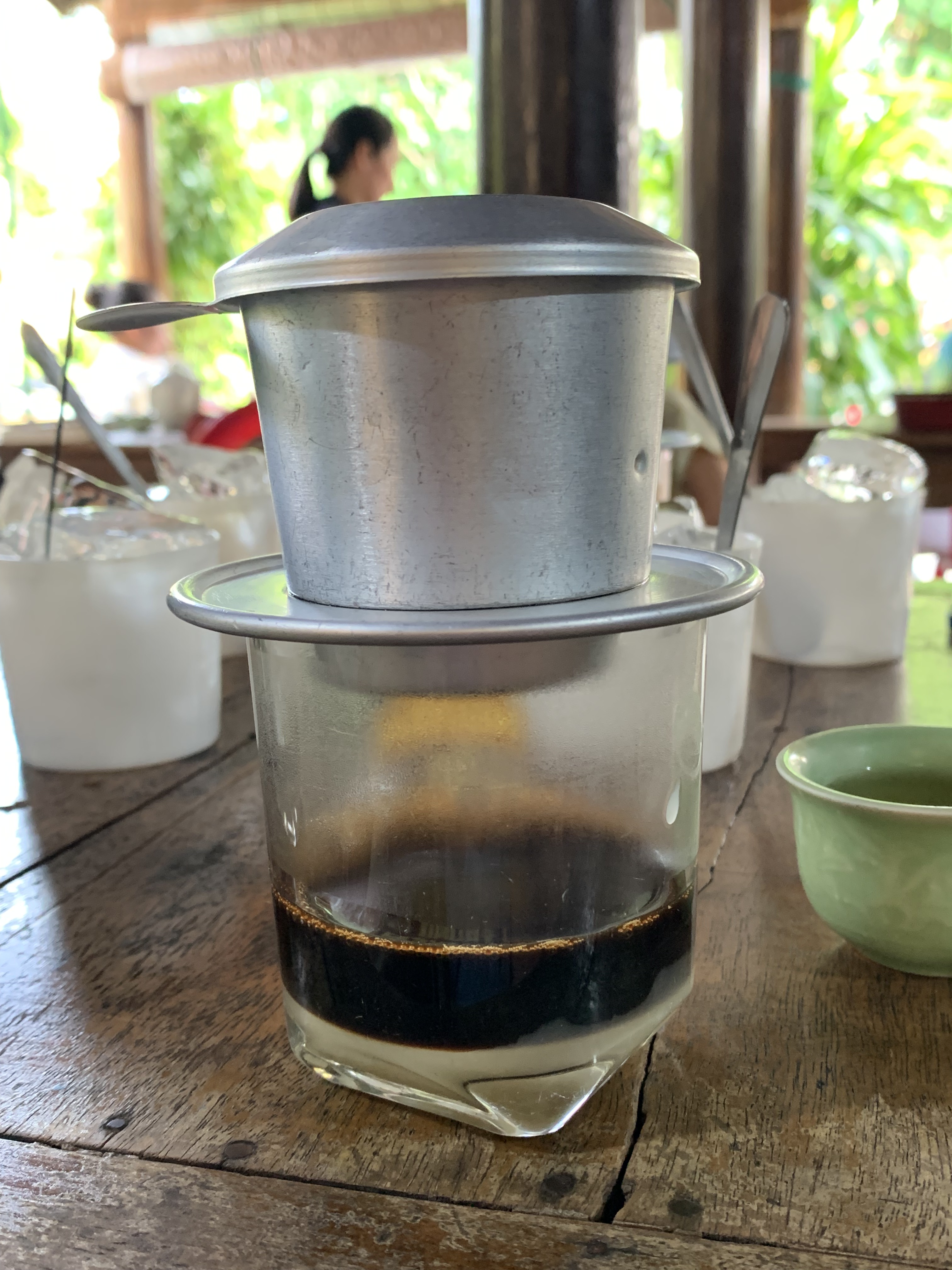Ganz nebenher haben wir während unserer vier Tage in Vietnam noch ganz verschiedene neue Kaffeespezialitäten kennen gelernt: Den super leckeren vietnamesischen Kaffee, der untern im Glas eine Schicht gesüßte Kondensmilch hat und von den meisten mit Eis getrunken wird. Dann einen Kaffee, der mit Joghurt serviert wird. Wahnsinnig lecker! In einem anderen Café, in dem wir mittags waren, gab es Kaffee mit Salz – unten Kaffee und darüber eine sahneartige gesalzene Schicht Creme und Kaffee mit Kokoseis. Alles SEHR zu empfehlen!