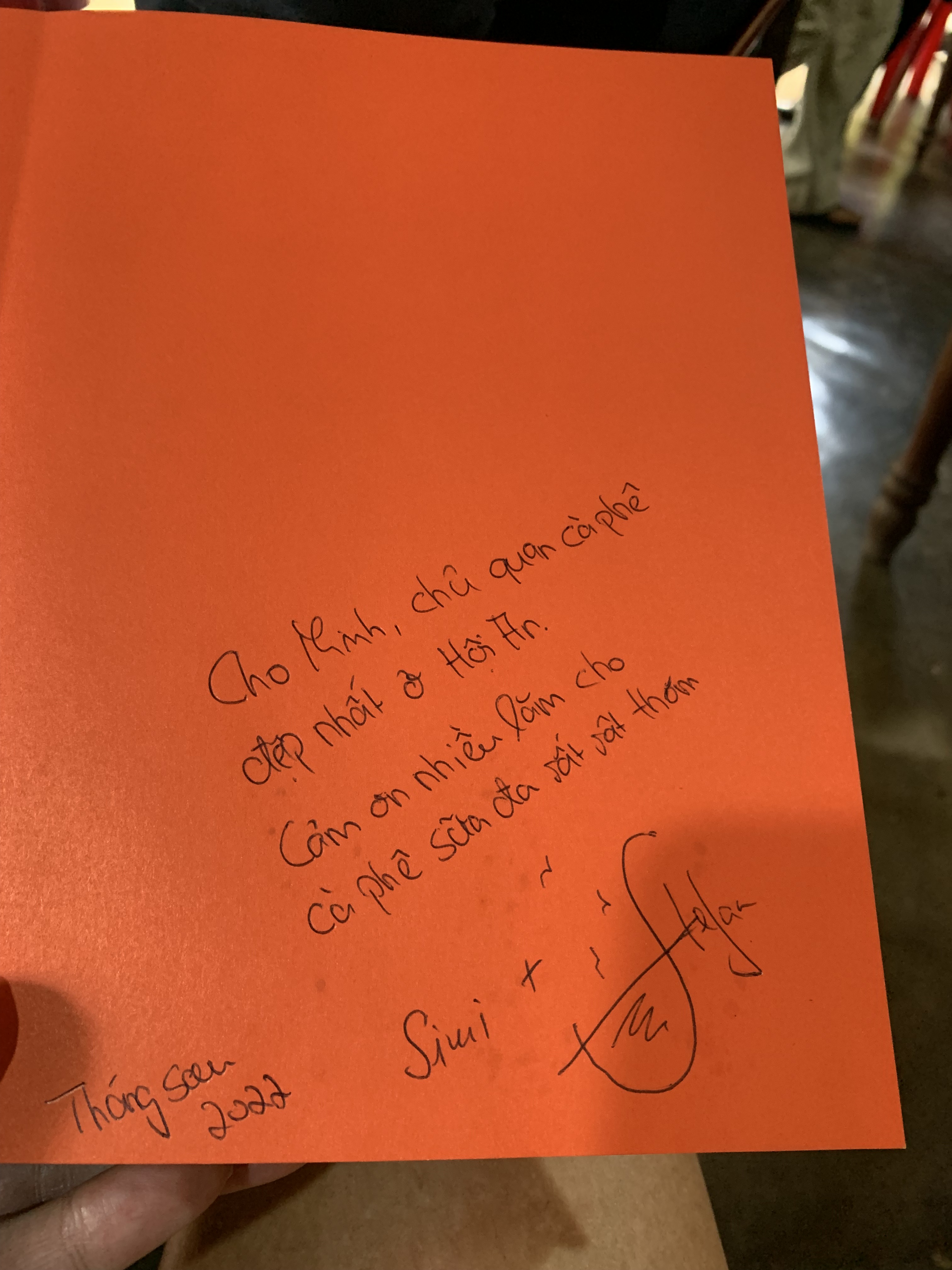 Weiter ging es in ein wunderschönes, noch versteckteres Literatur Café. Ich war glücklich. Klar, dass in diesem Café das Pho Buch von Stefan und Heike nicht fehlen darf. Natürlich mit Widmung und natürlich auf vietnamesisch. Stefan lernt seit einigen Jahren die Sprache und ich muss sagen, ich war durchaus beeindruckt. Die Leute haben ihn verstanden.