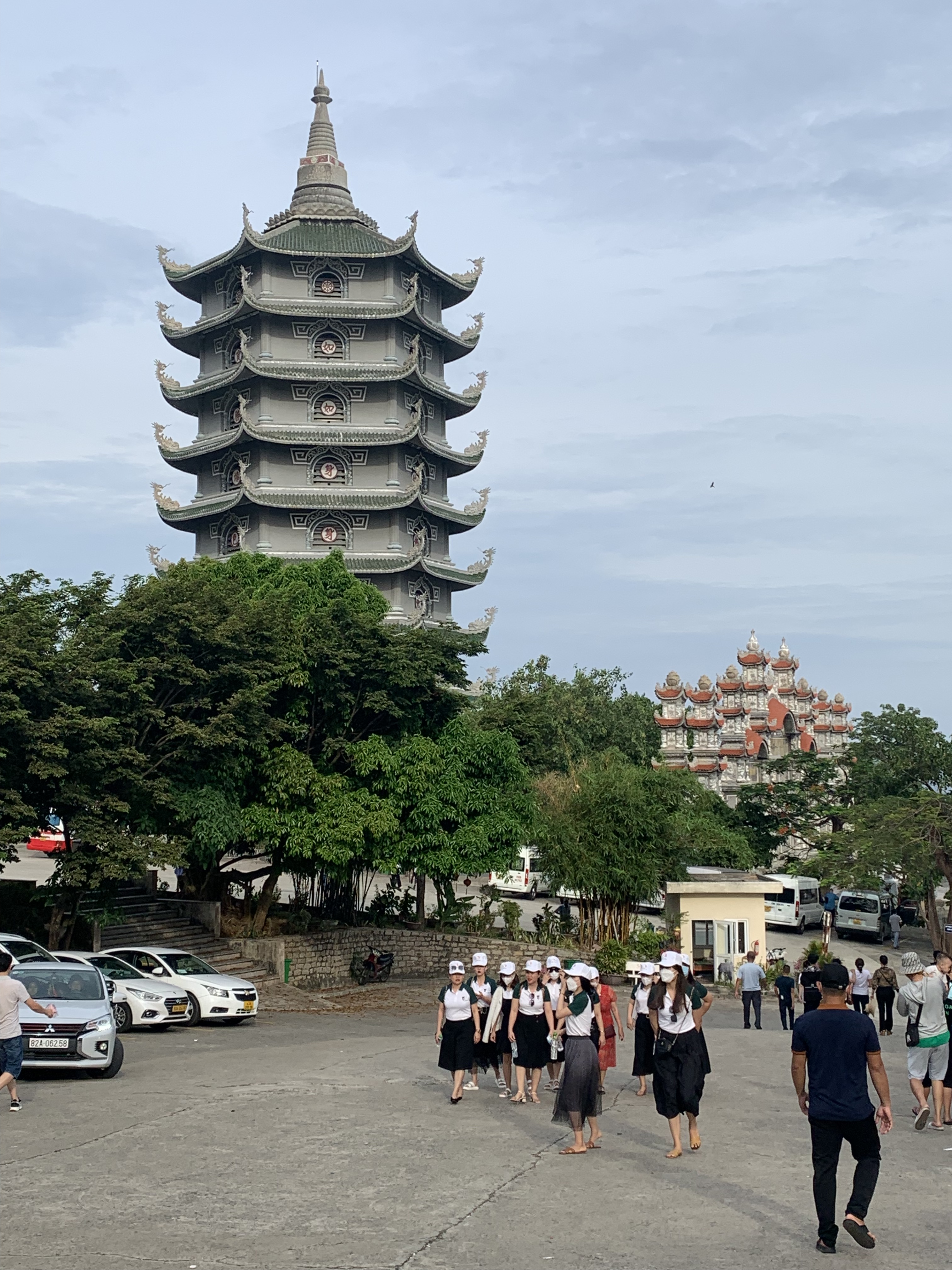 Schon von weitem kann man die riesige Statue der buddhistischen Göttin der Barmherzigkeit, Guanyin erkennen. Mit ihren 67 Metern Höhe, die größte in ganz Vietnam. Der Pagodenkomplex wurde erst 2010 eröffnet und bietet eine interessante Mischung aus moderner und traditioneller vietnamesischer Tempelarchitektur. Es gibt aber noch mehr Statuen. Unter anderem auch die 18 Steinstatuen der 18 Arhats. Quasi die 18 Apostel des Buddhismus – also die Anhänger Buddhas. Ihre Gesichtsausdrücke spiegeln sämtliche Gemütszustände aus. Von der Freude über die Liebe bis hin zur Wut und Traurigkeit.