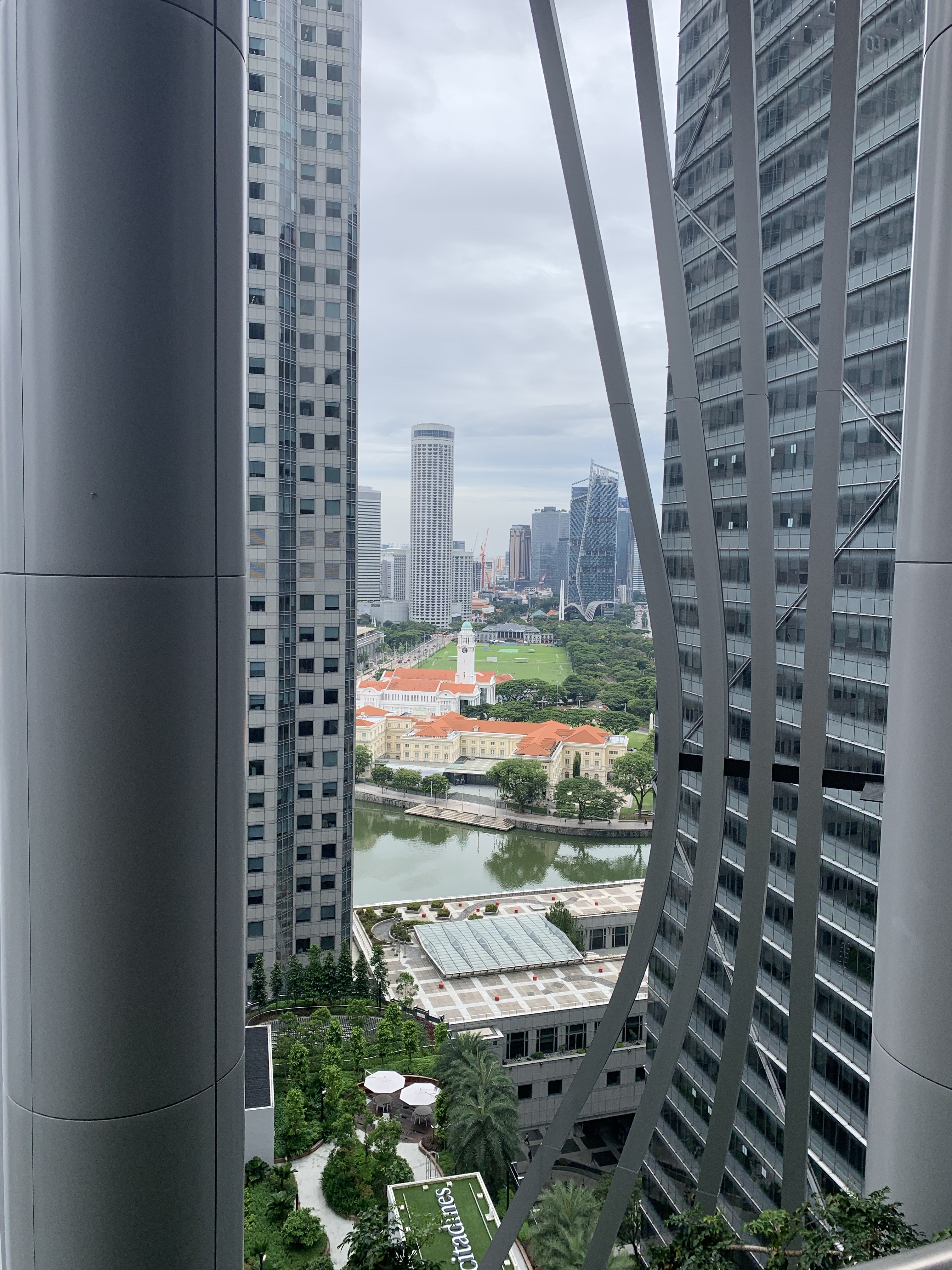 Ok, ich gebe zu, ganz nach oben in den Garten kamen wir nicht. Der war geschlossen. Es nieselte. Aber wir waren immerhin schon mal in der Green Oasis – eine nach allen Seiten grüne Oase zwischen der 17. bis 20. Etage. In den Etagen darüber und darunter – Büroräume und Serviced Apartments.